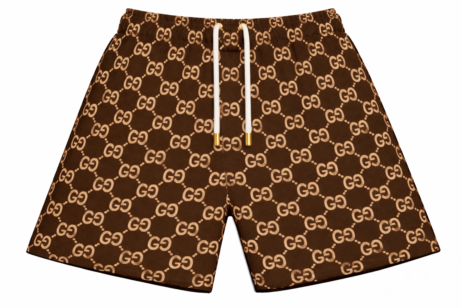 ASYLUM CO. GUCCI MONOGRAM BISON/CREAM SATIN MESH SHORTS