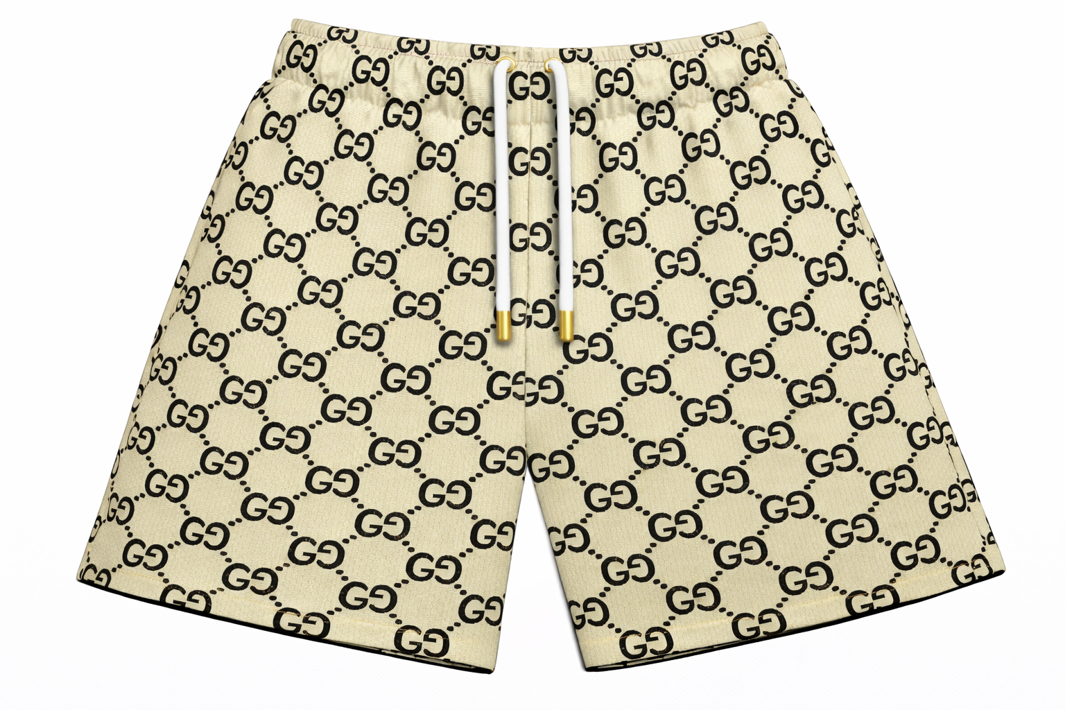 ASYLUM CO. GUCCI MONOGRAM OFF WHITE/BLACK SATIN MESH SHORTS