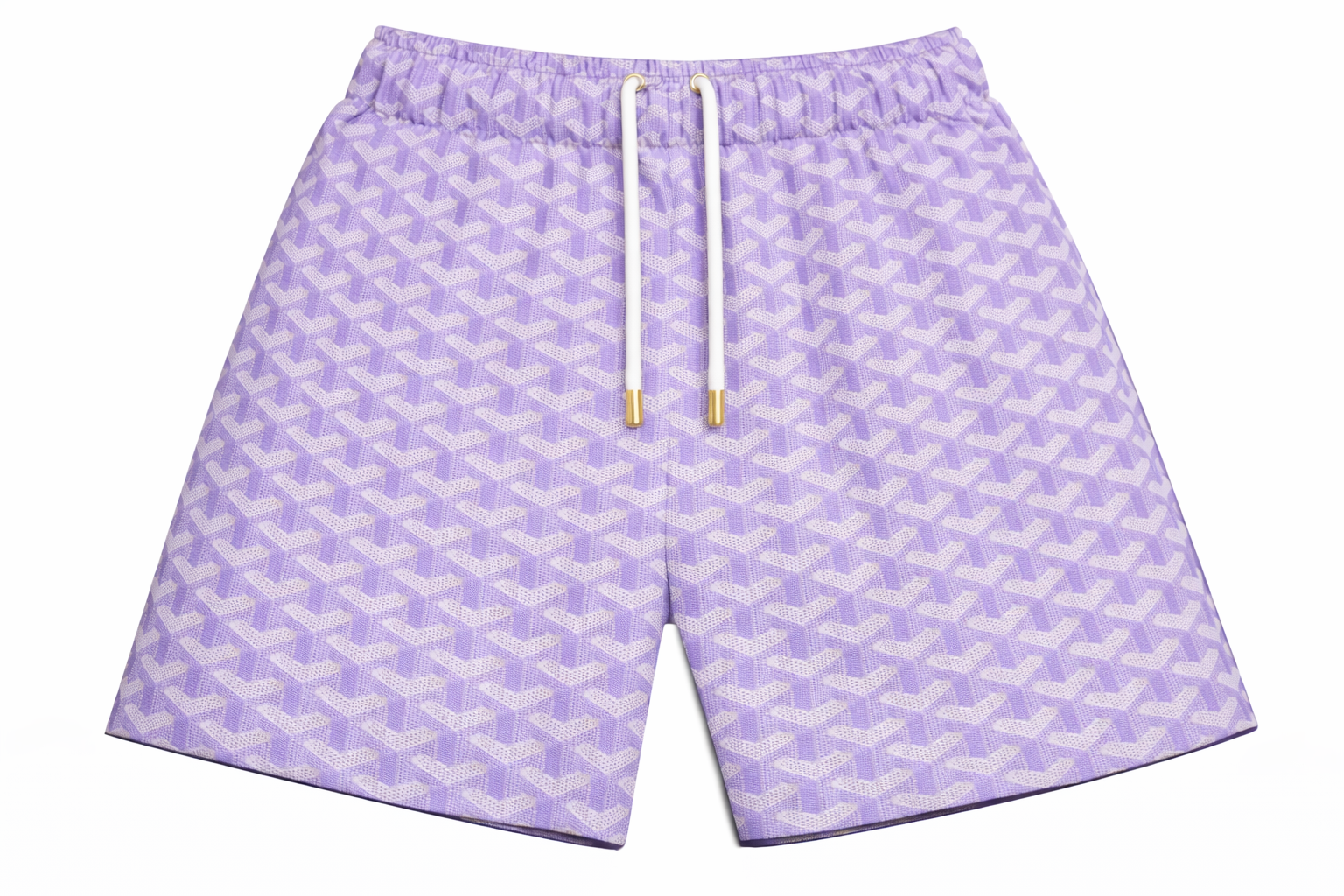 ASYLUM CO. LAVENDER GOYARD SATIN MESH SHORTS