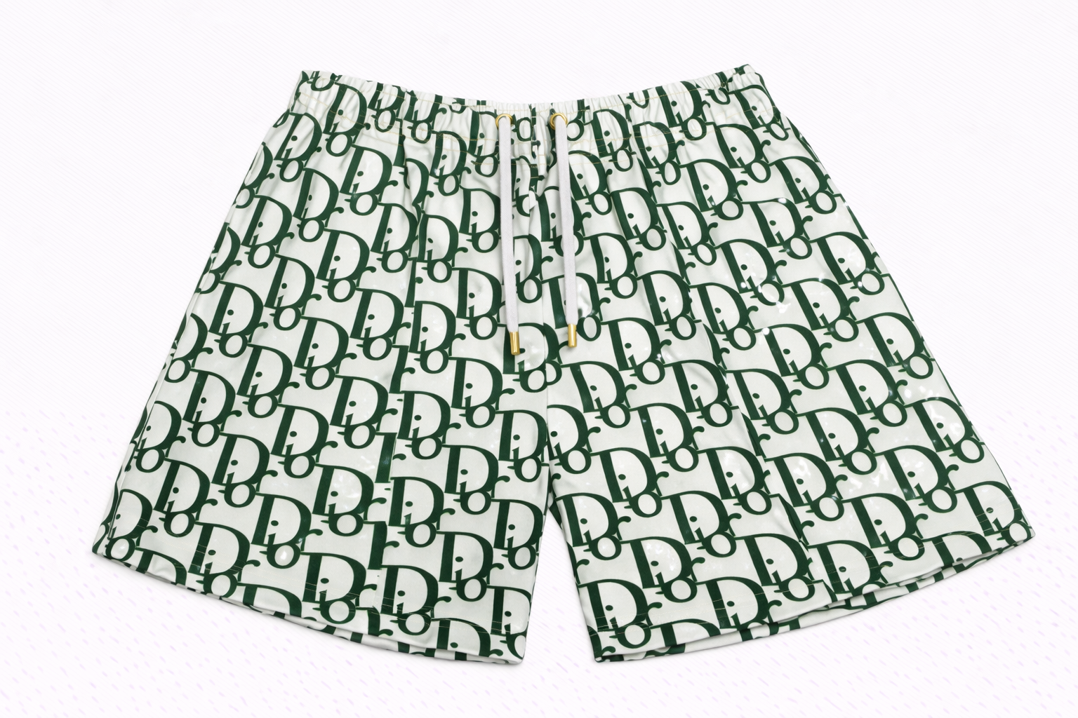ASYLUM CO. OBLIQUE MONOGRAM GREEN/WHITE SATIN MESH SHORTS