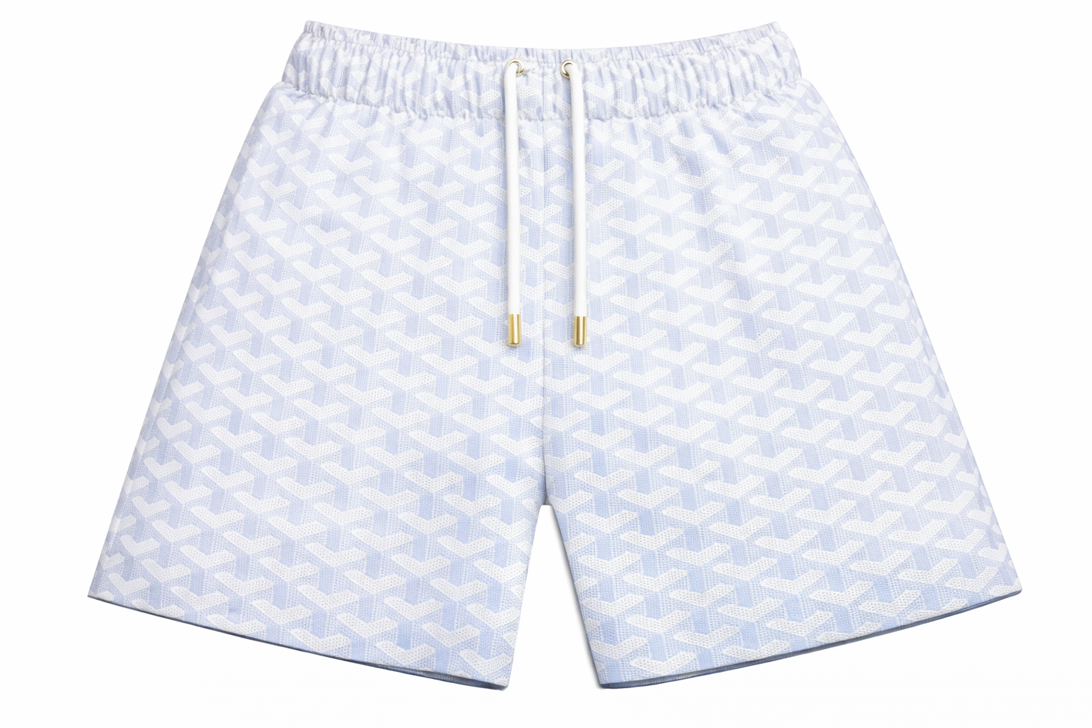 ASYLUM CO. PALE WHITE GOYARD SATIN MESH SHORTS